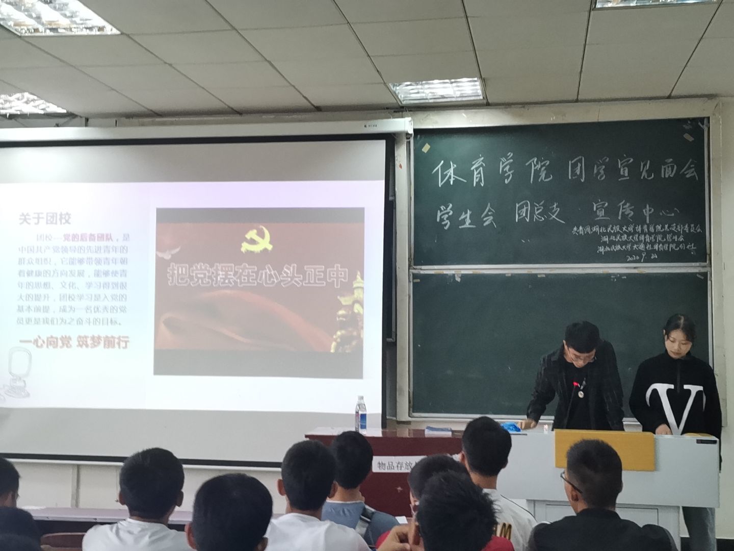 共青团36365线路检测登录入口体育学院总支部委员会、36365线路检测登录入口体育学院学生会、36365线路检测登录入口大通社体育学院分社学生干部分别介绍自己所在部门的工作和职责。本次见面会的宗旨是让2020级新同学们对团委、学生会、宣传中心这个大家庭有更多的了解,有助于每个部门明确任务,提高工作完成质量,熟悉活动内容、明确责任。团队应协作互助、全力配合加强部门联动,为未来新成员的加入做充实的准备。同时希望各位新同学们积极参与各部门,能够服务于学生,服务于大众。