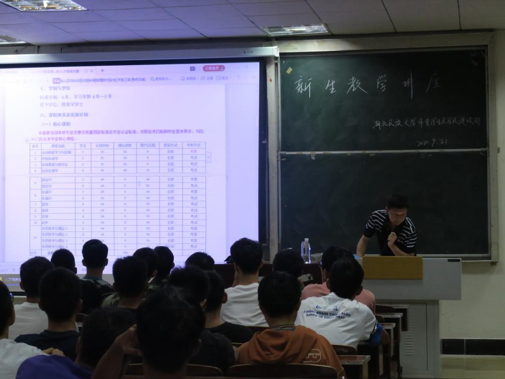 (通讯员 胥文浩 罗澜 图片/乾恩基)为帮助大一新生开创一个良好的学习开端,尽快适应大学生活。我院于9月21日晚在德智楼体育学院9a209教室开展以新生教学为主题讲座,我院教学科副科长肖杰文担任主讲,大一全体新生参加此次讲座。