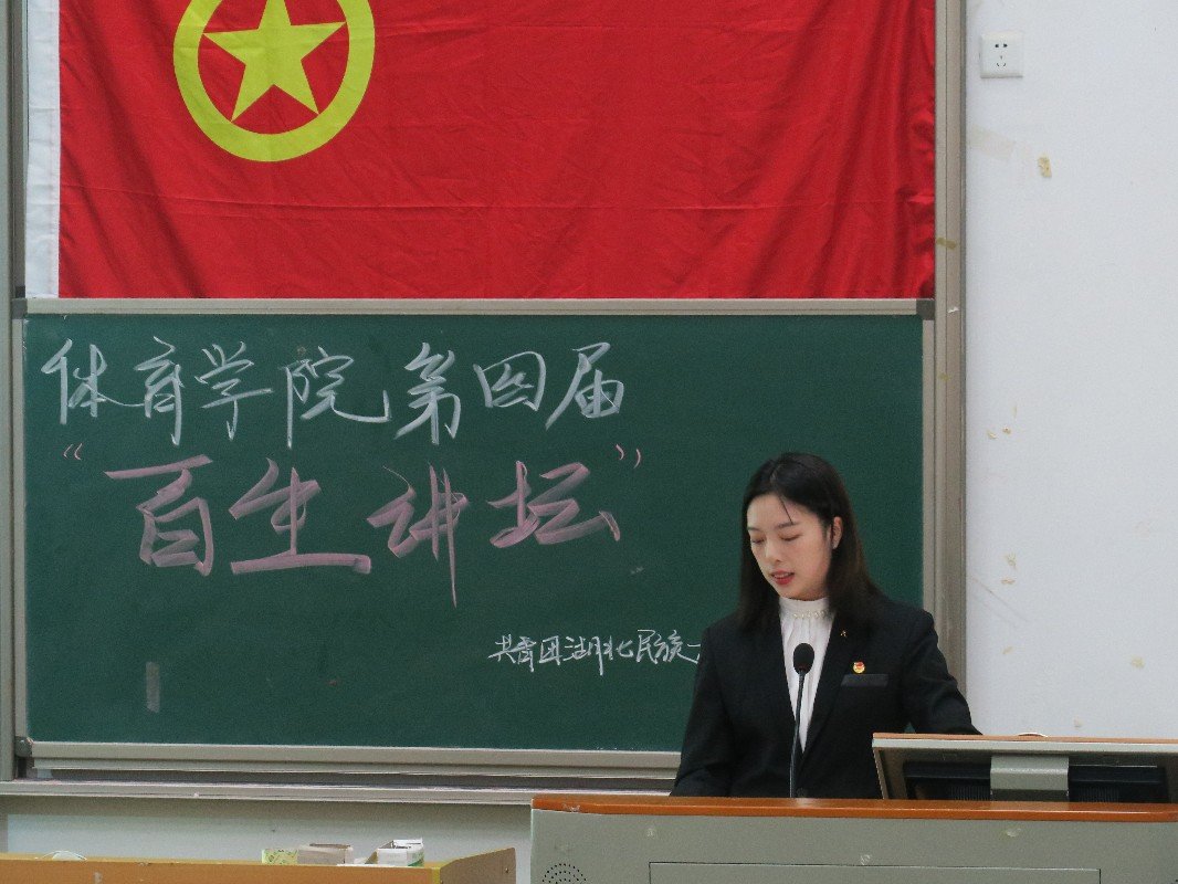 大会最后,学工处谭婷婷老师进行活动总结,她表示:“本次百生讲坛所提及的抗疫的担当与奉献、创业的奋斗、校园生活的努力、学生干部的锤炼、家国情怀的培养,都是我们青春的故事,彰显了我们当代大学生的青春风貌,展现了民大人的风采,同时向外界展示了体育学院优良的精神风貌,这些都是需要我们去学习的。希望同学们学有所获、学有所思、学有所用。”