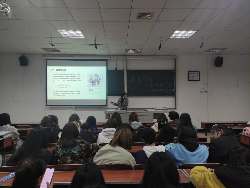 (通讯员 袁健栋 汤藤静 图片/蒋航)为帮助女大学生树立正确的恋爱观,掌握必要的安全行为知识。我院于3月21日晚八点在德智楼9A211举行女生专题讲座,学生科科长姜素凤主持,心理活动中心李田田老师担任主讲人,体育学院全体女生参加。