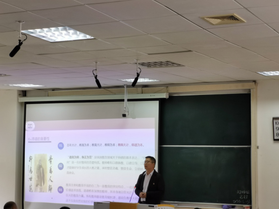 由教育学院邹太龙博士以“我国中小学师德政策建设70年:历史进阶、逻辑演进与未来构造”为题向党员授课,邹博士讲述师德的重要性,百年大计,教育为本;教育大计,教师为本;教师大计,师德为本。德高为师,身正为范。一名合格的老师一定要拥有模范作用。在中国共产党百年大计之时,作为党员也必须要有德有范有正。中国共产党百年历程体育精神也经历了百年的发展,师德也有悠久的历史。
