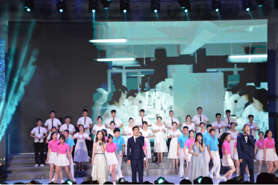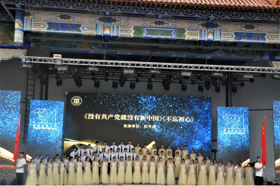晚会节目表演伴随着医学部合唱《没有共产党就没有新中国》《不忘初心》