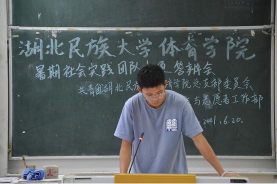 (通讯员 周浪 覃利萍 图片 蒋航)为进一步巩固转化学生暑期社会实践成果,选拔优秀实践团队及活动,6月20日下午5点30分,在我院德智楼二楼9A209召开体育学院社会实践答辩会,团总支书记张弋明担任本次会议评委,由19级、20级11支团队参与此次答辩。