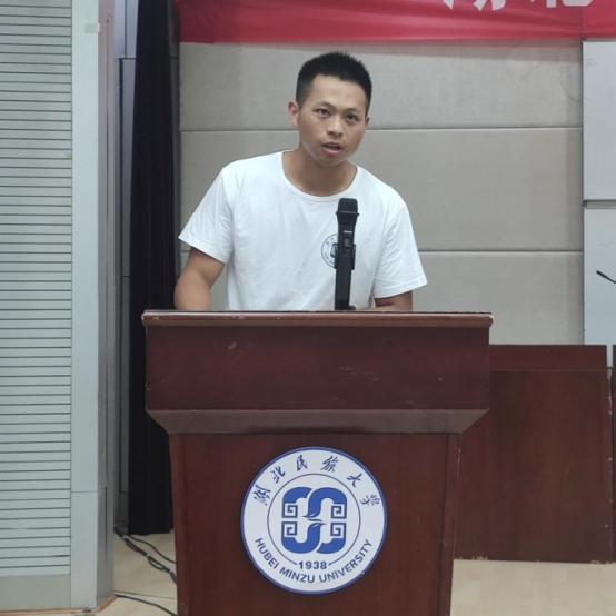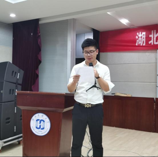 大会第四项,教师代表华中师范大学博士王先茂发言,希望与同学们携手迈步,开启新的篇章,开启人生中新学习,新生活。学会照顾自己和他人,要有真材实学,学真知识,练真本领,衷心祝愿各位同学学有所得,学有所成。