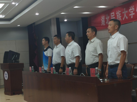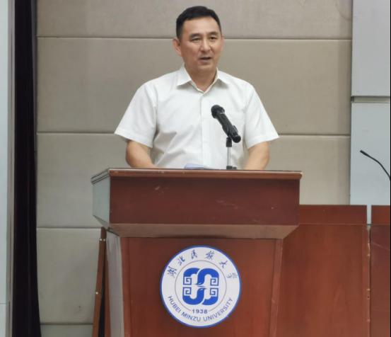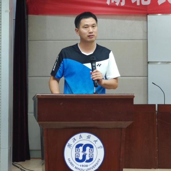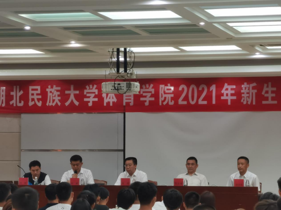大会第三项,体育学院党总支书记、院长倪东业致辞,在对新生表示热烈欢迎的同时希望进入湖北民大校园的同学们,要坚定事成好远,主动融入国家建设,勇于前行,确立新目标,新志向。在前进的道路没有捷径,希望同学在未来学习中,做到以下几点: