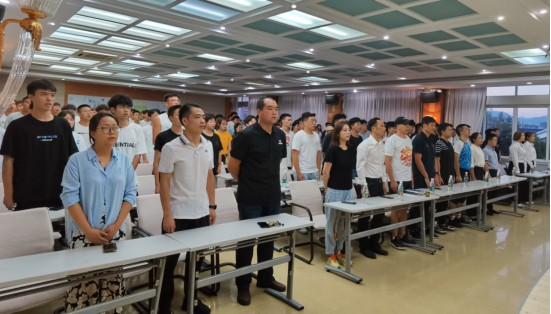 大会第一项,全体起立奏唱国歌。