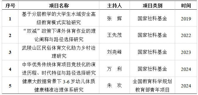 体育学院始终将科研工作作为发展的重要基石,逐渐成为引领体育学科创新发展的中坚力量。过去六年间,学院成功立项5项国家级科研项目,实现国家级项目连续三年立项不间断的重大突破,充分彰显了学院在体育科研领域的巨大潜力与创新动力。这些项目涵盖了体育科学的多个核心领域,全面展示了学院在推动学科前沿发展、提升科研水平中的重要贡献。