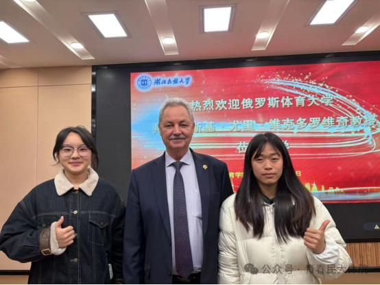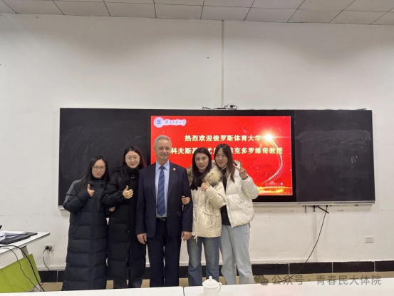 讲座现场,同学们热烈欢迎拜科夫斯基教授的到来。拜科夫斯基教授依次向此次讲座的参与者们介绍了俄罗斯大学的基本信息和非奥运项目-极限运动的种类,并阐述了其背后的运动风险等级划分以及参与各个项目的极限运动员所应具备的心理素质等,并就体育学院研究生提出的有关俄罗斯的体育热点问题、体育教师受重视程度、学校体育等问题进行了详细的解答。