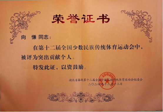 本次表彰既是对我院在本届运动会上表现的肯定,更是对我院工作的激励,我院将以本届运动会为抓手,不断提高民族传统体育项目的传承水平,为推动民族体育事业在铸牢中华民族共同体意识、促进各民族交往交流交融中做出更大贡献,为体育强国建设培养更多人才。