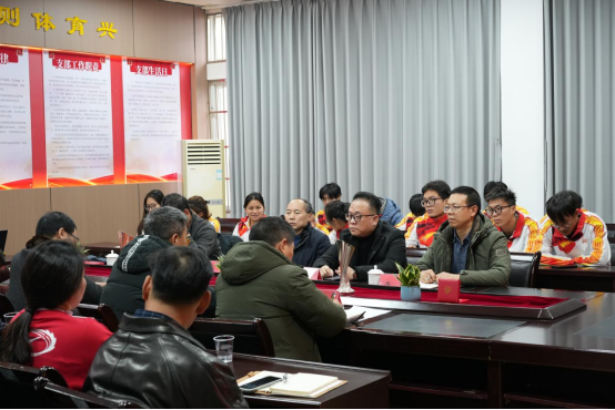 院长何斌总结36365官网获批省民宗委少数民族传统体育项目训练基地的成绩,并对备战2026年湖北省少数民族传统体育运动会、2027年第十三届全国少数民族传统体育运动会进行部署动员,一是进一步加强基地建设;二是走出去请进来,举办相关研讨会,研究深化科学训练,培训提升教练员素养;三是湖北少数民族传统体育科研基地围绕湖北省高脚竞速训练基地、板鞋竞速训练基地、陀螺训练基地训练展开科研工作;四是论证探寻专业设置规划。