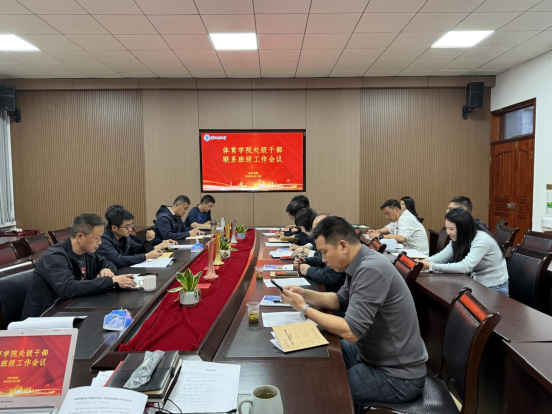 为认真落实立德树人根本任务,切实转变工作作风,践行党的群众路线,在学院深入贯彻中央八项规定精神学习教育之际,按照学校党委的统一部署,认真落实处级干部联系学生、服务学生工作机制,提升学生思想教育以及管理服务工作质效,4月13日晚7:00,我院在体育学院会议室召开处级干部联系学生班级暨学生工作专题会议。学校保卫工作部(处)(武装部)部(处)长周代明、图书馆副馆长李远明、教学质量评价中心·教师发展中心副主任李金容、学院领导班予以及学院全体辅导员和班主任参加会议。会议由学院党总支副书记万利主持。