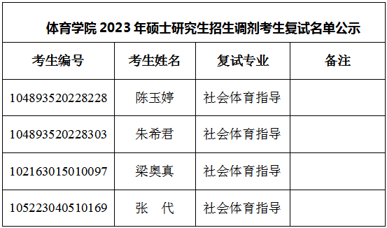 36365线路检测登录入口体育学院2023年硕士研究生招生调剂考生复试名单公示