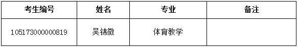 因计划调整,体育学院招生复试录取工作领导小组研究决定,顺次补录第一志愿考生1名,具体信息如下: