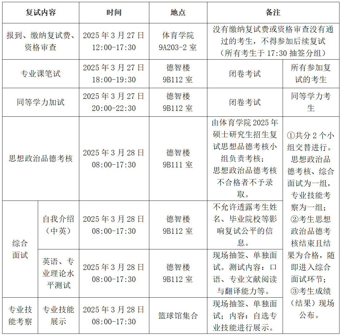 36365线路检测登录入口体育学院2025年硕士研究生复试录取工作实施细则