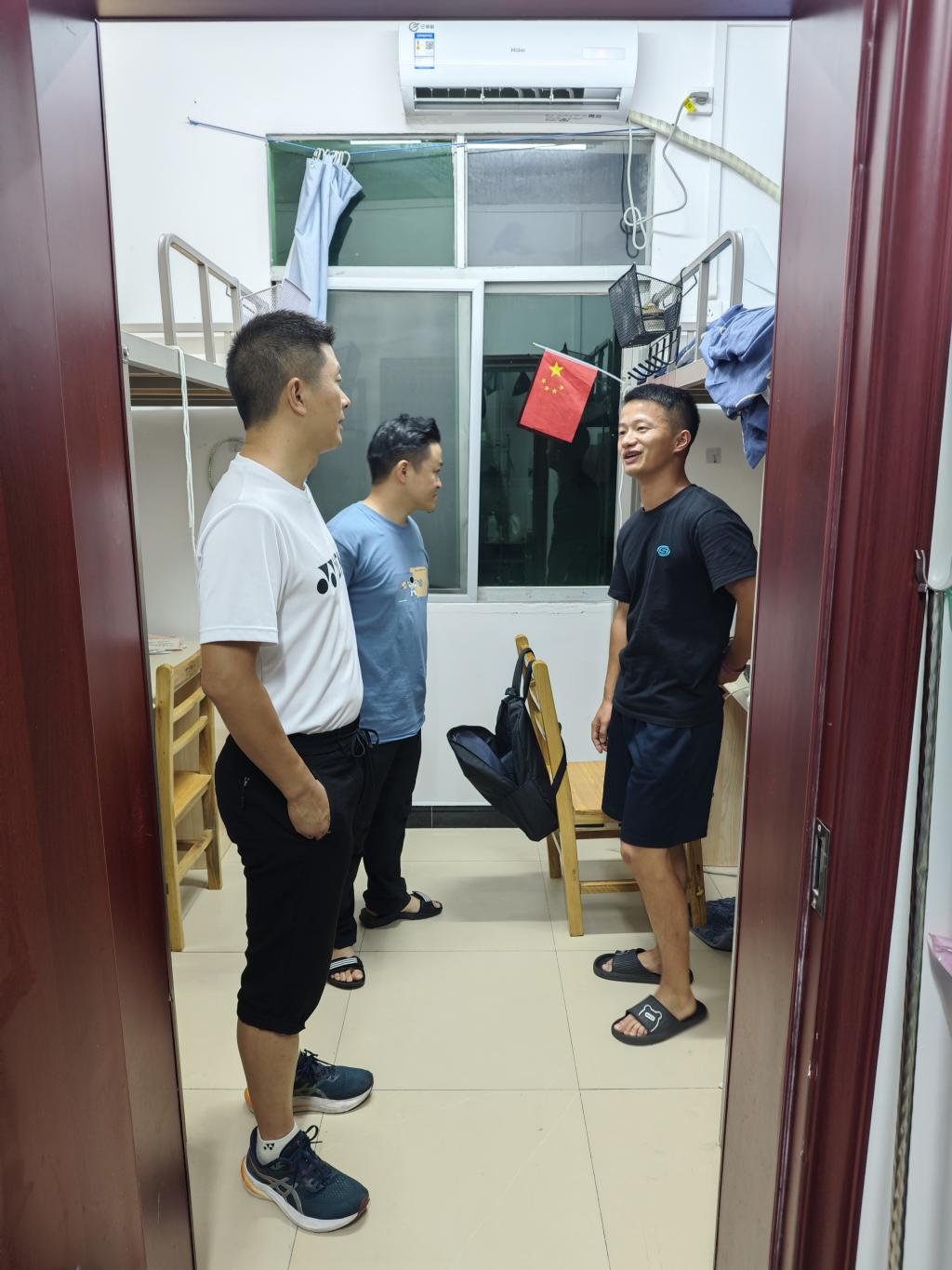7月25日,由体育学院副院长张辉、学科建设科科长王先茂及研究生辅导员李义军,深入寝室看望了解暑期留校研究生学习、生活、出行、饮食等,特别强调寝室安全用电、防火防盗以及安全出行、高温防中暑等注意事项。鼓励暑期留校研究生加强学习,积极参与导师组课题,力争产出高质量学术成果。