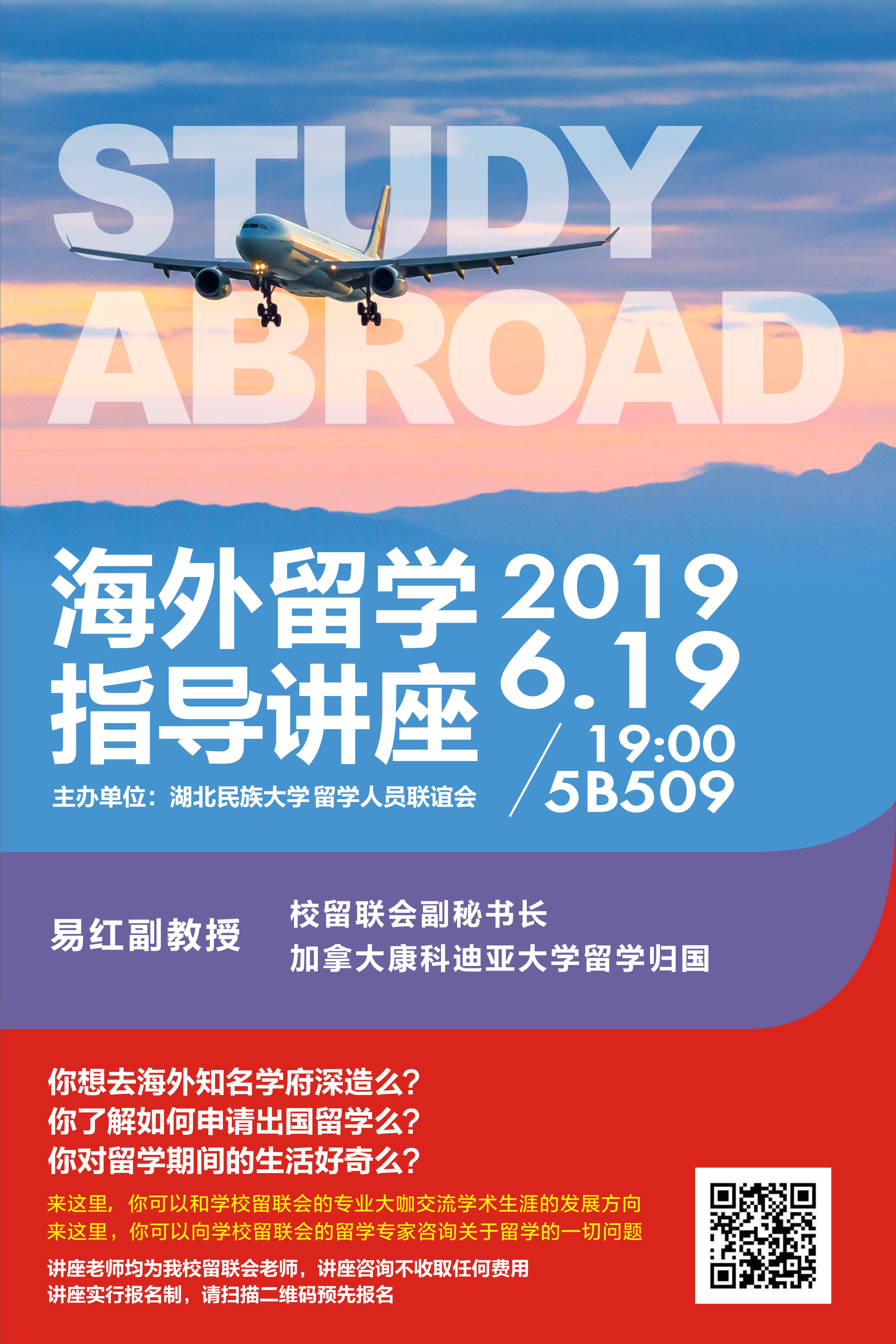 为服务广大师生,36365线路检测登录入口留学人员联谊会拟为本科生海外留学提供咨询服务,兹定于6月19日19:00在5B509教室举办《海外留学指导讲座》。