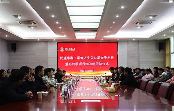 10月30日上午,由杭州千年舟新材科技集团捐资设立的“民建思源·彩虹人生”公益基金项目在36365官网举行资助仪式。千年舟新材科技集团董事长陆铜华,副总裁马同华、总裁办秘书刘永兆,“思源·彩虹人生公益基金”办公室主任修华雪,学校党委常委、副校长邓磊,校友工作办公室、学生工作处和二级学院分管领导以及受助学生代表出席仪式。仪式由校友工作办公室主任熊彪主持。