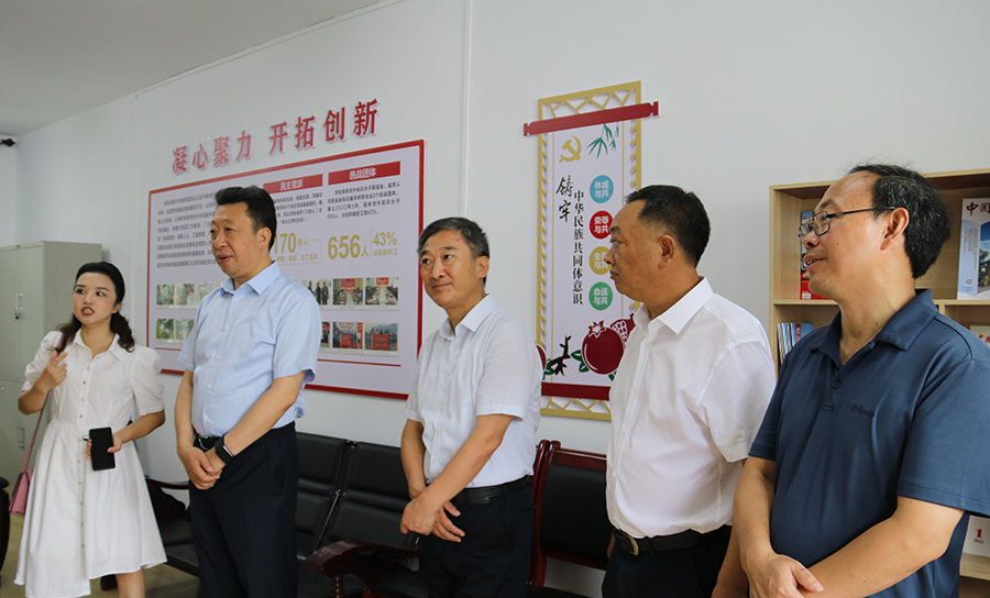 施政(左二)在顿祖义(左三)、田景福(右一)的陪同下考察侨联办公室