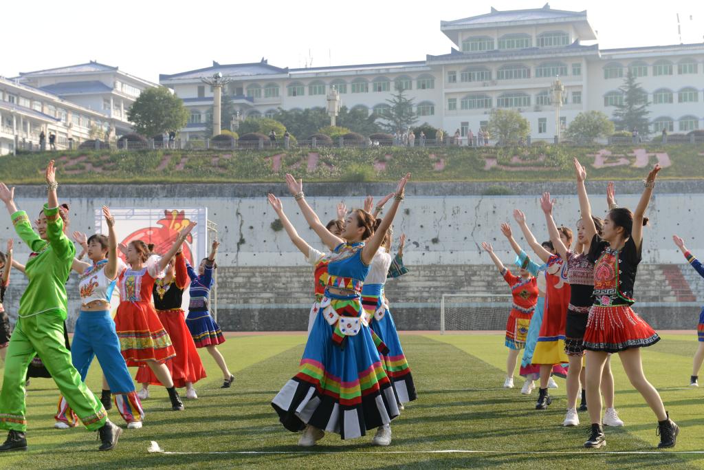 随后开展了民族团结健身操比赛,全校17个二级学院(部)各自组成方阵参加了比赛,本次比赛的民族团结健身操由学校团委组织,音乐舞蹈学院老师专项编排,通过民族团结健身操的推广希望广大同学既要铸牢中华民族共同体意识,也要多开展户外活动,强身健体,为中华民族的伟大复兴强健体魄。通过紧张角逐,比赛最后音乐舞蹈学院和医学院获得比赛一等奖,体育学院、文学与传媒学院、美术与设计学院获得二等奖,教育学院、新材料与机电工程学院、法学院、外国语学院、经济与管理学院、马克思主义学院获得三等奖。