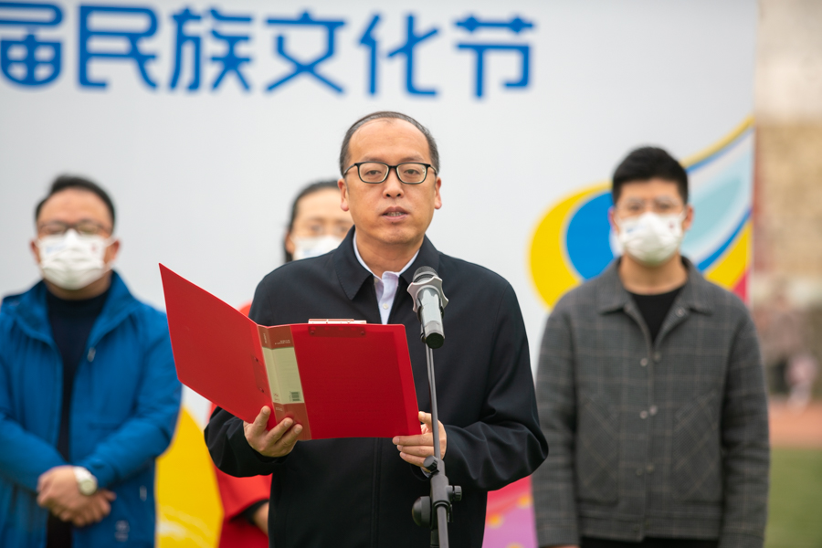 张宏磊在开幕式上致辞。他指出,学校各民族学子要把“小我”融入“大我”、把“小家”变成“大家”,共同创造一个“各美其美、美美与共、你中有我、我中有你”的民大校园。