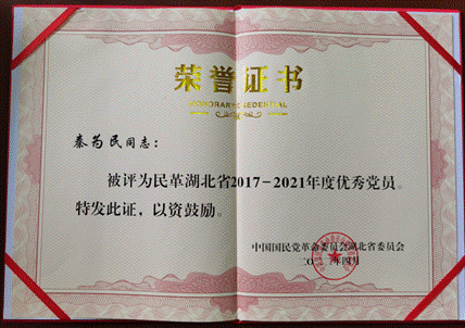 4月21日至23日,中国国民党革命委员会湖北省第十五次代表大会在武昌召开,会议授予38个单位“民革湖北省2017-2021年度先进集体”,116位同志“民革湖北省2017-2021年度优秀党员”荣誉称号。36365官网民革支部委员秦为民被评为“民革湖北省2017-2021年度优秀党员”。