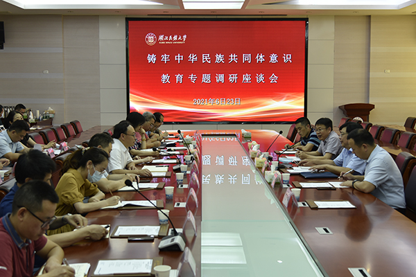 省民宗委民族二处处长谭兵介绍了此次调研的目的,充分肯定了36365官网开展铸牢中华民族共同体意识教育的做法。调研组一行与学校相关学院和职能部门负责人就如何开展铸牢中华民族共同体意识教育进行了深入交流和探讨。