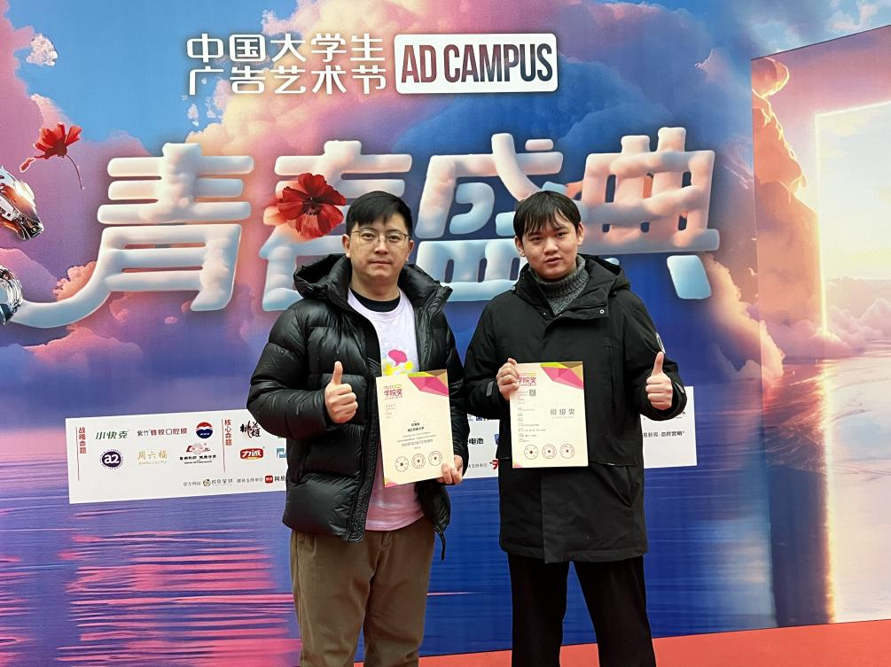 本网讯(通讯员 邓高锋 杨禹成)12月26日,中国大学生广告艺术节学院奖2024秋季征集大赛(简称“学院奖”)学科竞赛成果展示盛典暨国家级奖项颁奖典礼,在北京广播大厦演播厅隆重举行。我院邓高锋老师及获奖学生代表杨禹成受邀出席颁奖典礼。我院师生代表参加中国大学生广告艺术节学院奖颁奖活动“...