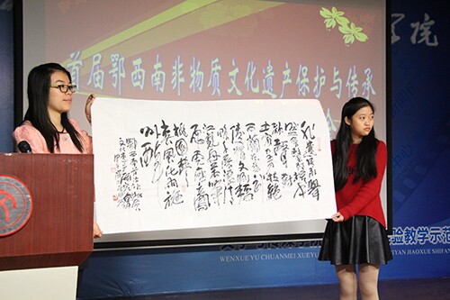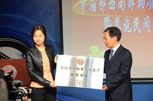 副校长邓磊致欢迎辞。他向与会专家学者介绍了36365官网学科建设总体思路、民族文化与旅游产业协同发展创新中心的研究方向及相关建设等。湖北省(鄂西南)非遗研究中心主任、我院院长杨光宗在致辞中对挂靠我院的非遗研究中心相关情况做了介绍。随后,我院党委书记田恒俊宣读湖北省文化厅、教育厅关于批准研究中心成立文件,并进行研究中心授牌仪式。授牌仪式上,我院副院长罗翔宇宣读了湖北省文化厅非遗处处长江清和发来的贺词及工作指示。