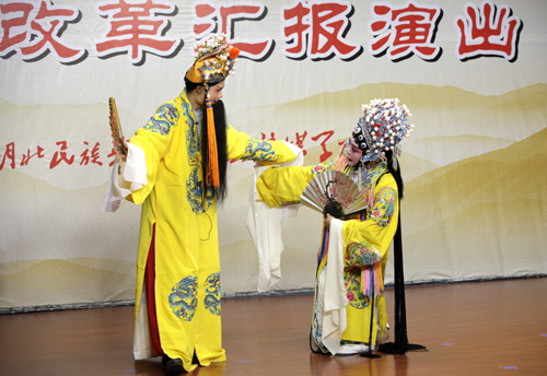我院一直重视创新教育,在不断建立健全奖励机制的基础上,多次派遣各专业老师远赴各高校进行考察学习,为专业发展提供新思路。此外,今年初我院成立了京昆研习社,邀请72岁京剧艺术家张燕冰为艺术指导教师,从而使更多学生真正认识并喜爱上昆剧、京剧,成为教育创新的范例。同时,我院成立实验电视台,以便学生把理论知识运于实践,一大批师生原创微电影《女儿会》、《看不见的你》,MV《想飞就飞》等相继出炉,广受好评。据了解,此次汇报演出只展现了该院教育改革的一个方面,此后还会通过制度改革、机制创新等形式,创新教育教学方式,从而提高学生的综合能力。
