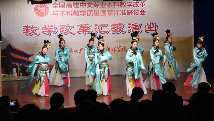 本网讯(记者 鲍莉莉 余宏琼)4月27日晚,我院在附楼演播厅举办全国高校中文专业本科教育改革与本科教学质量国家标准研讨会教学改革汇报演出,得到了教育部的高度认可。