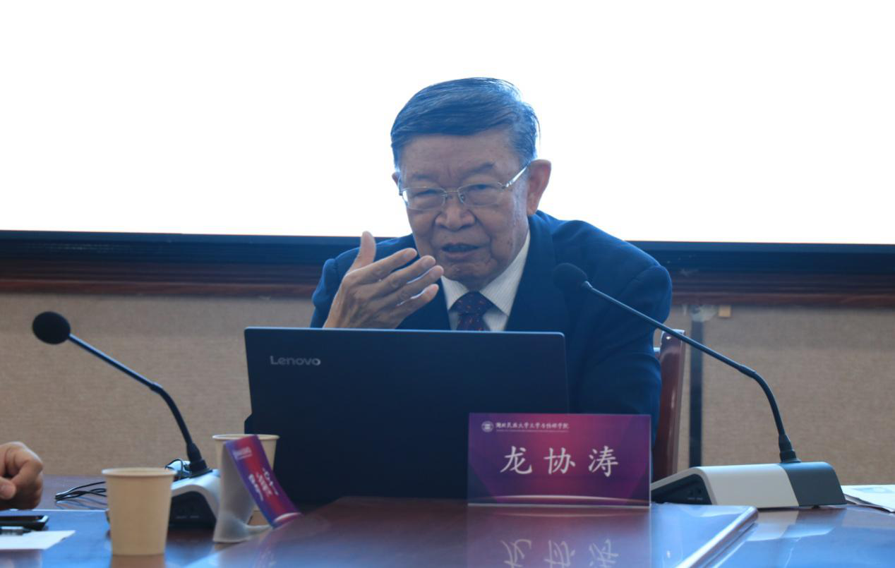 龙协涛教授从“国学素养贵在积累”“全脑教育 通识教育”“文化大师们的案例”等方面阐释了国学素养的养成路径,并从自己为季羡林先生撰写的挽联等创作经历出发,认为中文素养是一个人的核心素养。他希望同学们学会积累、掌握特点,做到“一通百通”。他将语言和思想比喻成洋葱的“皮”和“肉”,认为两者不可分割。在谈到当下推行的“通识教育”时,他强调文章既要有逻辑,也应具备情怀,并培育审美和形象思维。
