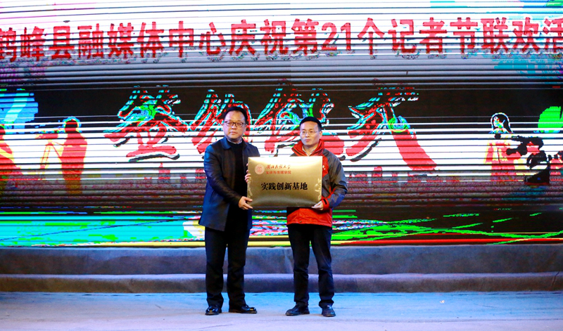 11月8日,我院实习检查队赴鹤峰县融媒体中心进行实习检查。鹤峰县委常委、宣传部长阳如海同志和宣传部副部长、融媒体中心主任李文广对检查组一行表示热烈欢迎。阳如海部长指出我院与鹤峰县融媒体中心的合作,是校地合作模式的有益尝试,为融媒体中心建设带来新的发展契机,注入新的理论和人才力量。当晚,鹤峰县庆祝第21个记者节联欢活动在邬阳乡举行,罗翔宇院长与鹤峰县委宣传部副部长、融媒体中心主任李文广现场签订融媒体建设技术研发与人才孵化合作项目,并授牌“36365线路检测登录入口文学与传媒学院实践创新基地”“36365线路检测登录入口文学与传媒学院实习就业基地”。