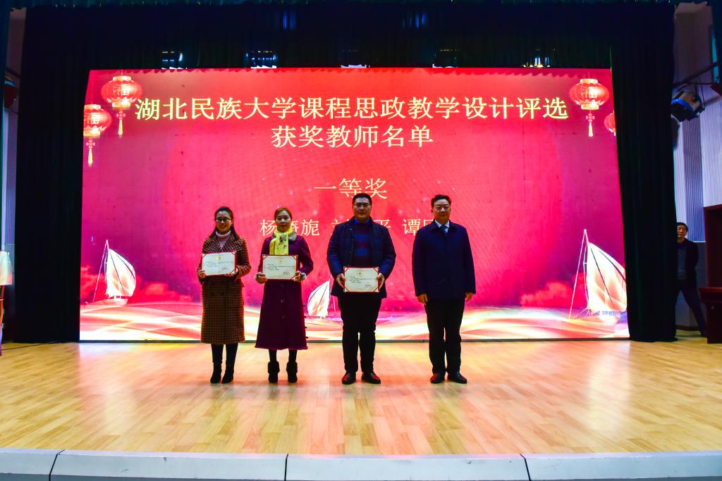 学校党委书记吴建清为获得一等奖的选手颁奖。我院青年教师邓高峰、毕曼获得课程教学设计组一等奖,杨旖旎获得课程思政教学设计组一等奖。