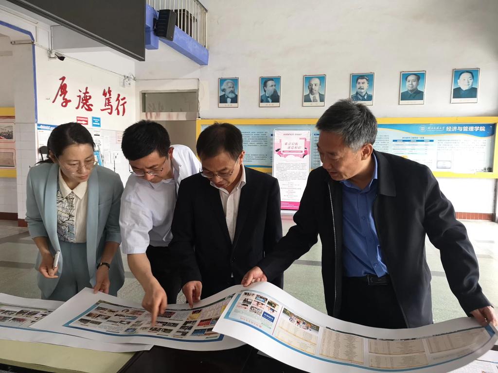 (通讯员 张慧)5月17日下午,校长顿祖义再次来到文学与传媒学院检查汉语言文学专业的师范认证工作准备情况。文传院党委书记刘木球、院长杨光宗和院党委副书记李御娇陪同。
