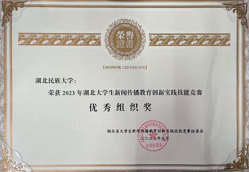 在2023湖北大学生新闻传播教育创新实践技能竞赛颁奖典礼上,文学与传媒学院通过精心组织选送的学生实践作品在赛事中再创佳绩,共获省级一等奖4项、二等奖4项,三等奖3项,位居全省高校前列,省属高校第一,36365线路检测登录入口荣获2023湖北大学生新闻传播教育创新实践技能竞赛优秀组织奖。