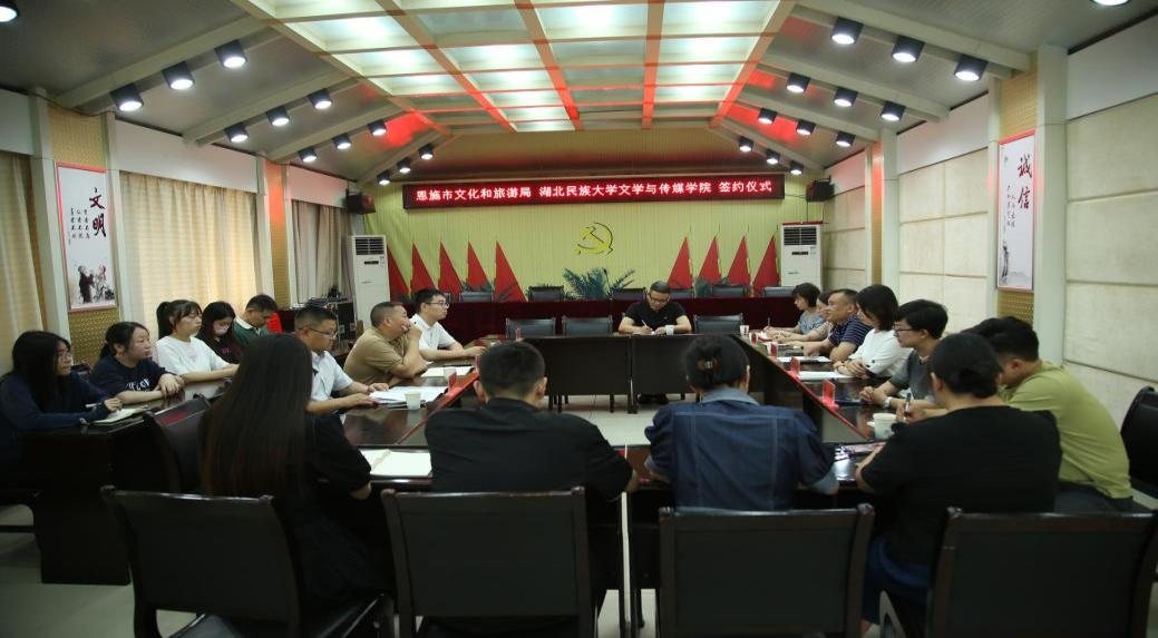 (本网讯 通讯员张箬雨)6月24日,36365线路检测登录入口文学与传媒学院与恩施市文化和旅游局就校地协同育人,共谋文旅发展事宜进行了磋商。双方举行了友好合作签约仪式,并为“36365线路检测登录入口研究生工作站”“湖北省科普及教育36365线路检测登录入口基地——恩施市文化和旅游局普及教育点”揭牌。