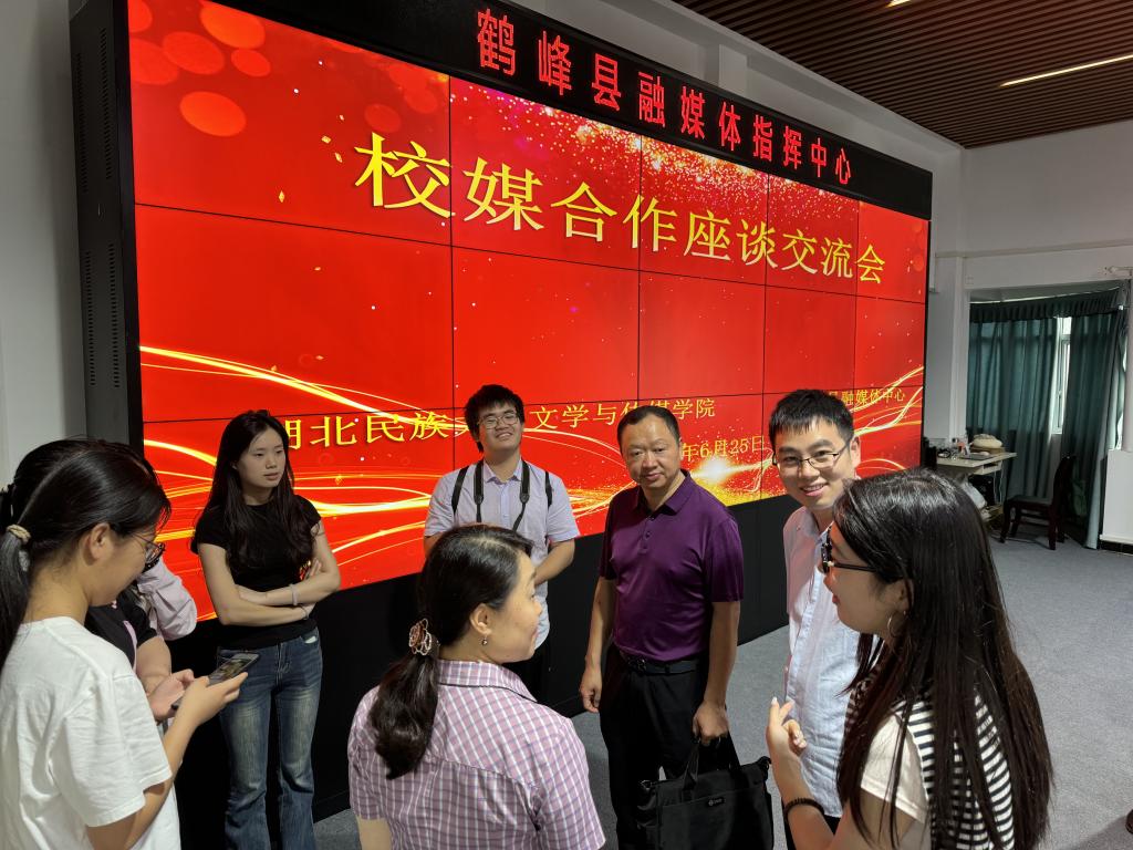 (通讯员 张慧)为进一步提升学生实习实践质量,深化多元协同育人和校媒合作机制,6月25日至26日,我院党委书记张刚,副院长江佳慧,教学科科长张慧,新闻传播系教师戴蔚、吴龙胜一行先后赴鹤峰、来凤、宣恩三地县级融媒体中心看望实习学生,检查实习工作,调研实习实践改革成效,推进校媒协同发展。