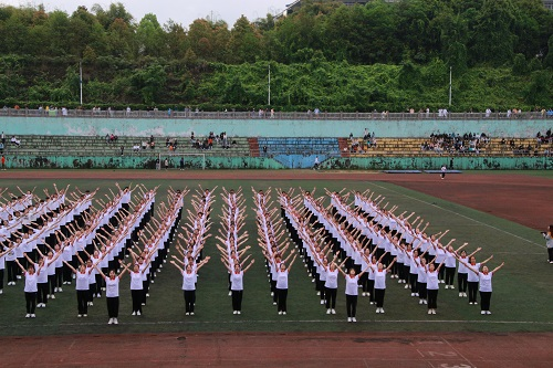 我院学子正在进行广播体操比赛(记者 王朝慧/摄)