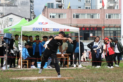 我院2019级学子闫晨豪参加铅球比赛(记者 熊新/摄)