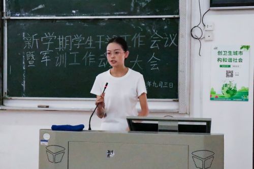 学生会学风建设部副部长王颖作为学生组织代表发言。她就军训考勤流程、纪律要求及工作人员注意事项作出规范,强调人员调度应清晰有序,值班职责须明确到位。她特别提醒全体工作人员注意沟通方式方法,若遇特殊情况需留存相关材料,积极防范和化解潜在矛盾。