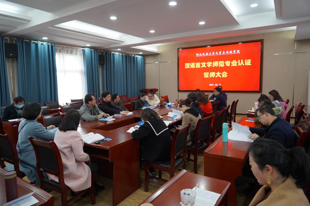 (文字 赵雅璇 摄影 姚爱华 )为扎实推进我院汉语言文学师范专业认证工作,2021年3月11日下午,我院召开师范专业认证工作誓师大会。学院全体教师参加了会议,会议由学院党委书记杨光宗主持。