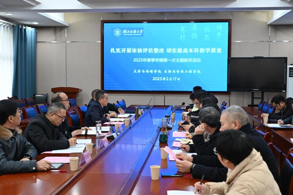 本网讯(文/唐小惠 图/李辛格,谢思思)2025年2月17日上午,我院联合生物与食品工程学院开展以“扎实开展审核评估整改,切实提高本科教学质量”为主题的教研活动,学校党委常委、纪委书记、监察专员张宏磊,教务处处长谭华,教务处副处长熊茂来,生物与食品工程学院党总支书记周志,文学与传媒学...