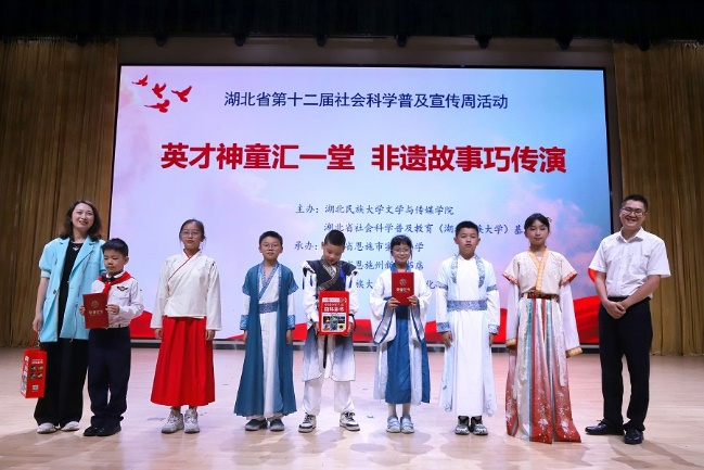 本网讯(记者 吴雯茜/文 张熠璠 李思涵 赵含韵/图)6月3日,由文学与传媒学院与湖北省社会科学普及教育基地主办,恩施市实验小学、恩施州新华书店与非物质文化遗产研习学社联合承办的“大手牵小手,非遗文化进校园”特色活动在新区多功能厅和大学生广场举办。活动分为上半场故事会、舞台剧比赛与下...