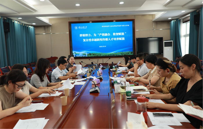 (记者 杨旖旎 吴龙胜)7月7日,我院新闻传播系在智慧教室一成功举办教育思想大讨论专题研讨会。本次研讨会以“群策群力,为‘产教融合、数智赋能’复合型卓越新闻传播人才培养赋能”为主题,围绕2025版人才培养方案修订及数智化教学改革展开深入探讨。学校教务处副处长朱廷辉、我院副院长刘进华出...