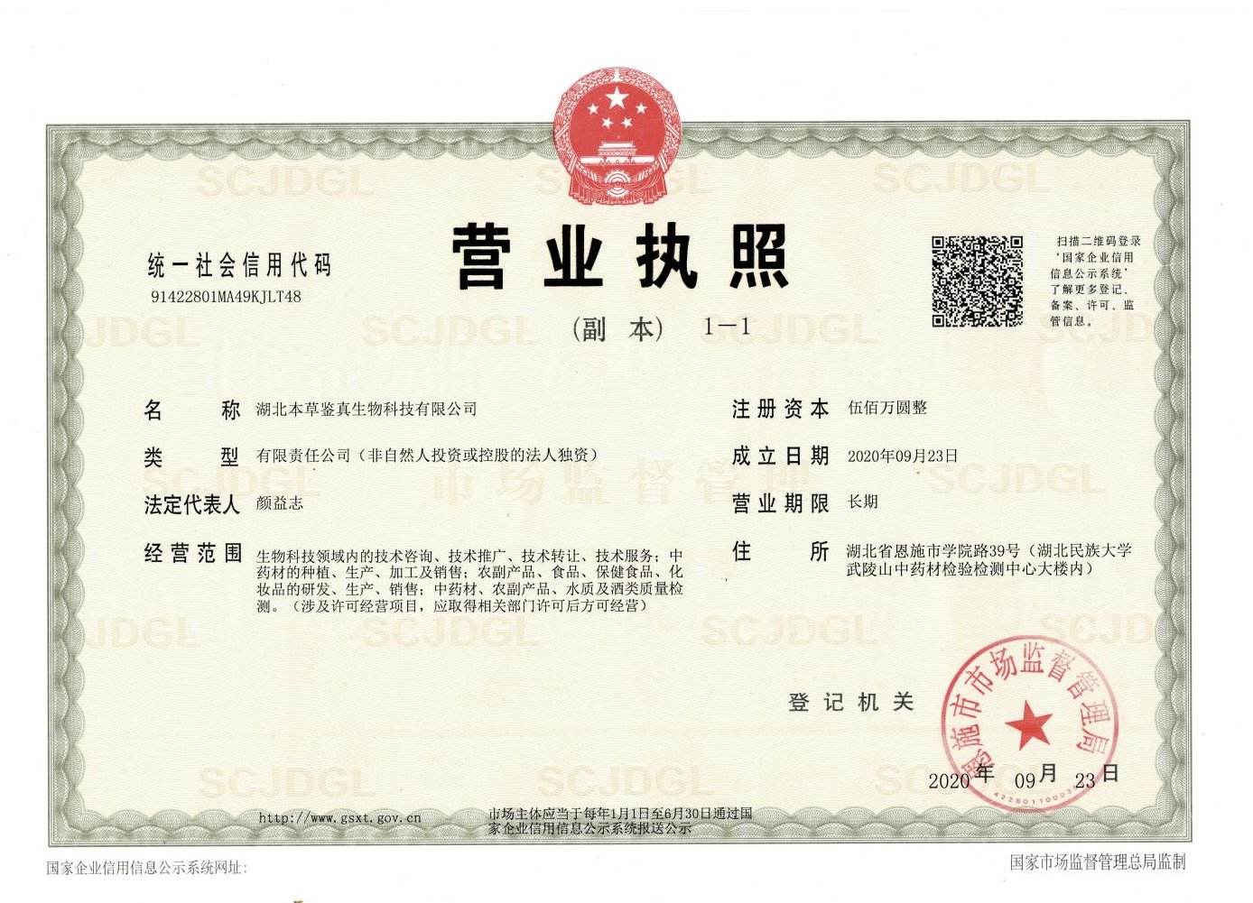 湖北本草鉴真生物科技有限公司在36365线路检测登录入口成立