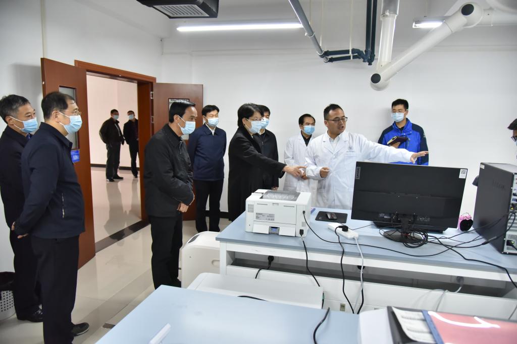 肖菊华一行参观了中心检验检测实验室的核心区域,并详细了解了中药材检验检测对地方产业发展的促进、中药材科研成果转化等方面的情况。中心主任颜益志分别从中心建设背景、功能布局、建设进度规划和下一步重点工作等方面作了现场汇报。