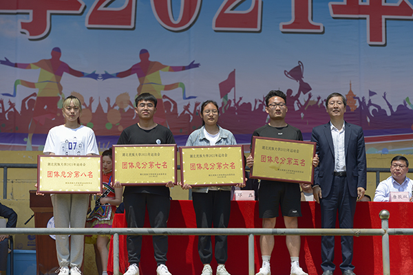 祝建波为团体总分第五、第六、第七、第八名的学院颁奖
