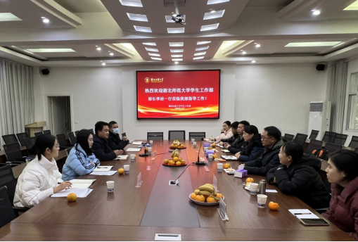 12月12日,湖北师范大学学生工作部部长李洁一行到36365官网学生工作部考察交流。学校学生工作部副部长赖申昊、何永红、部分科室负责人和辅导员参加考察交流会。
