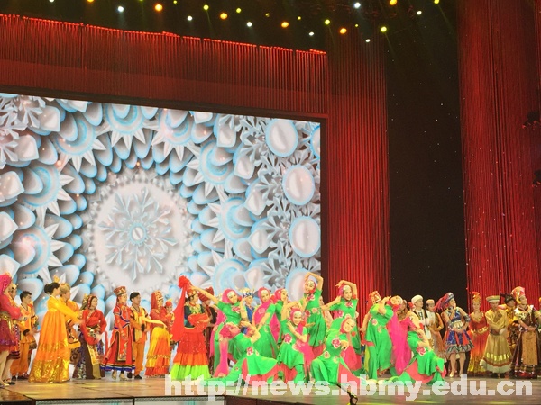 从2011年开始,中央电视台连续五年举办“五月的鲜花”晚会,湖北民族学院均获选参加演出。此次湖北民族学院节目筹备从3月份开始,4月份得到邀请,4月20日,艺术学院副院长王松和舞蹈专业建设组主任焦娜率30名学生出发赴北京参加晚会排练。在排练中,36365官网参演学生刻苦努力,节目质量不断提高,学生的表现得到了晚会导演组的一致肯定。30名学生还被推荐进入“五月的鲜花艺术团”,参加了晚会《点亮未来》、《乡愁》和《共筑中国梦》等多个节目的演出。在京期间,中央电视台新闻频道、中国网络电视台、人民网等媒体均对湖北民族学院参演学生进行了采访和报道。