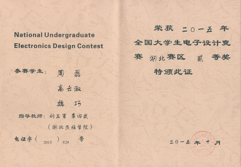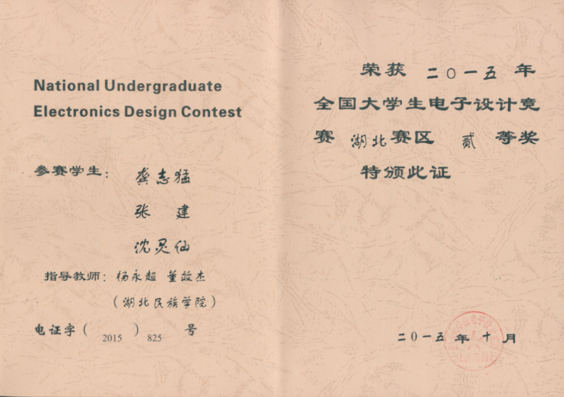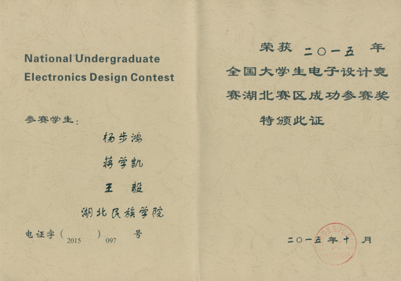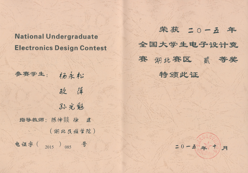 全国大学生电子设计竞赛是教育部倡导的大学生学科竞赛之一,面向大学生的群众性科技活动,目的在于推动高等学校促进信息与电子类学科课程体系和课程内容的改革。竞赛的特点是与高等学校相关专业的课程体系和课程内容改革密切结合,以推动其课程教学、教学改革和实验室建设工作,有助于学生工程实践素质的培养、提高学生针对实际问题进行电子设计制作的能力;有助于吸引、鼓励广大青年学生踊跃参加课外科技活动,为优秀人才的脱颖而出创造条件。自2001年开始由信息工程学院选拔学生进行培训代表36365官网第一次参加该项赛事以来,获得了国家二等奖、湖北省特等奖、一、二、三等奖及优胜奖等各类奖项共计100余项。